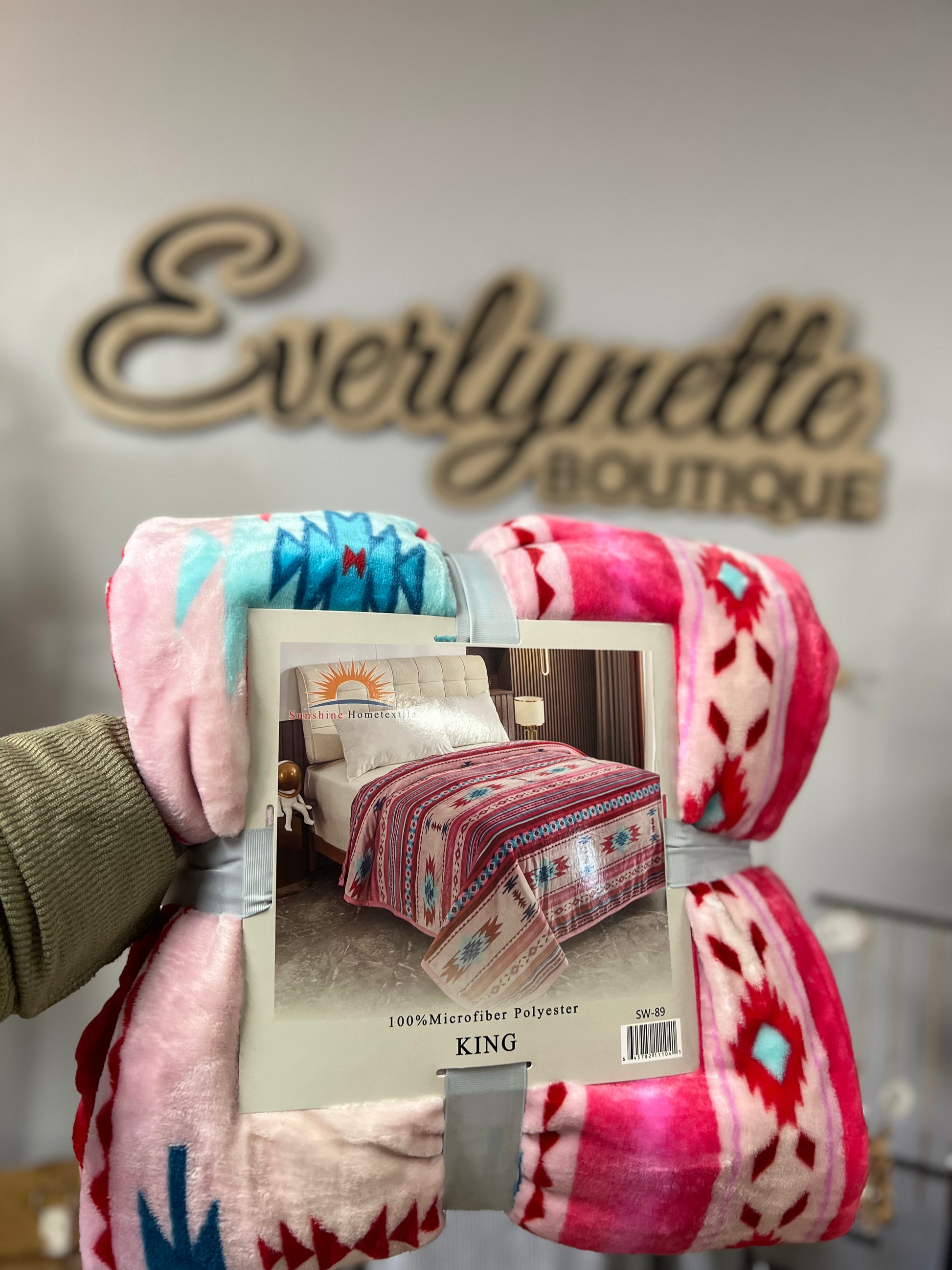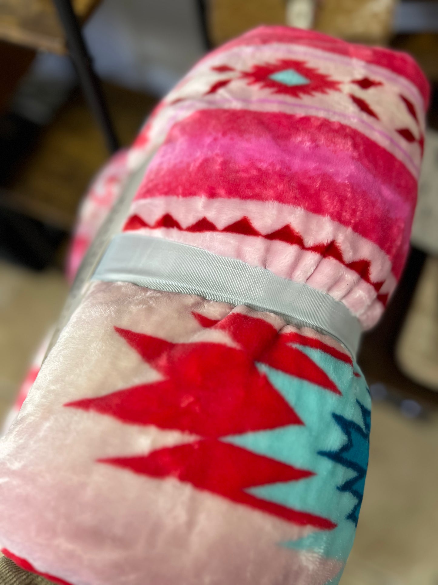 King size pink Aztec pattern throw