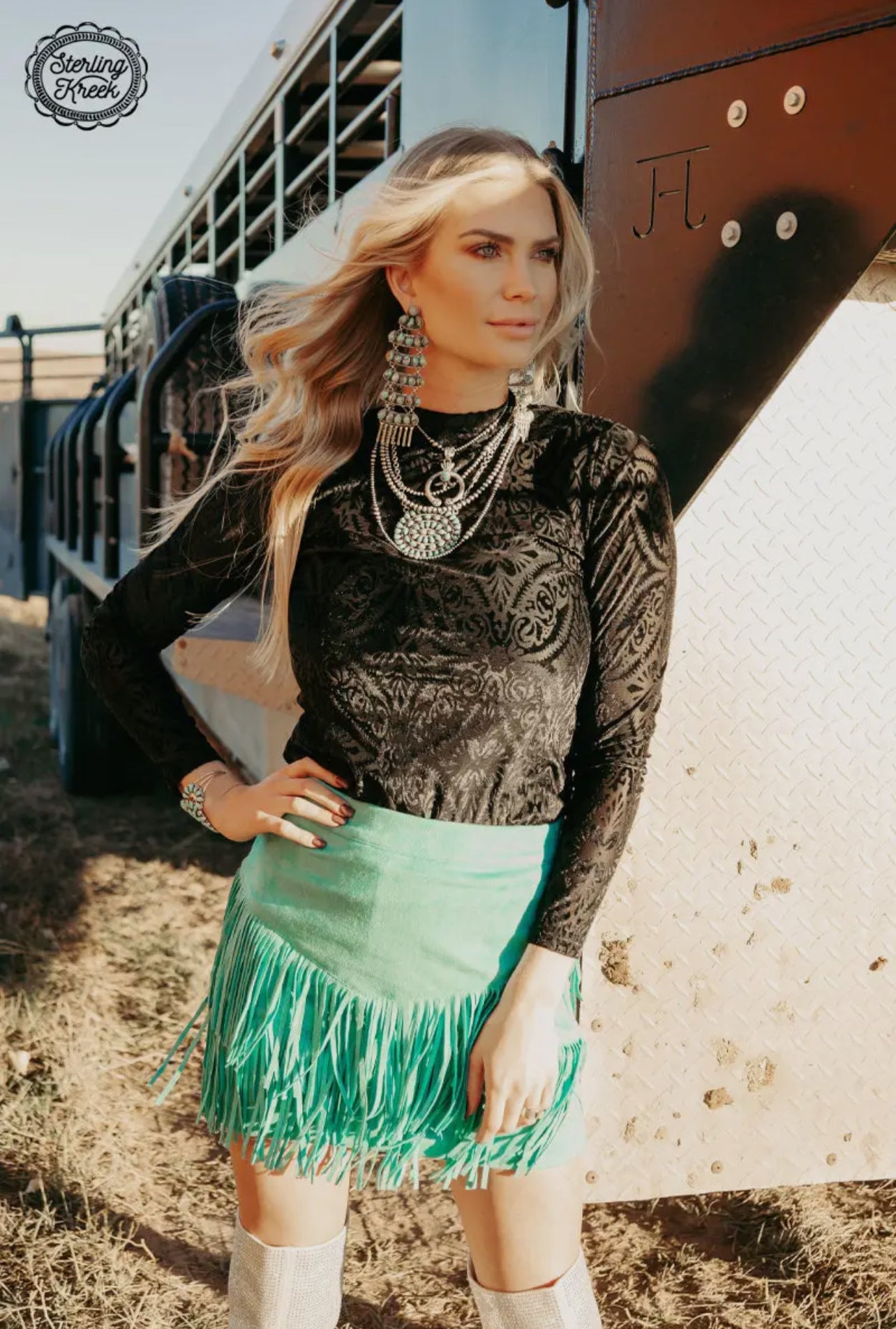 This long sleeve mesh paisley top is a cute way to beat the chill and bring a little something extra to any short sleeved t you already have!